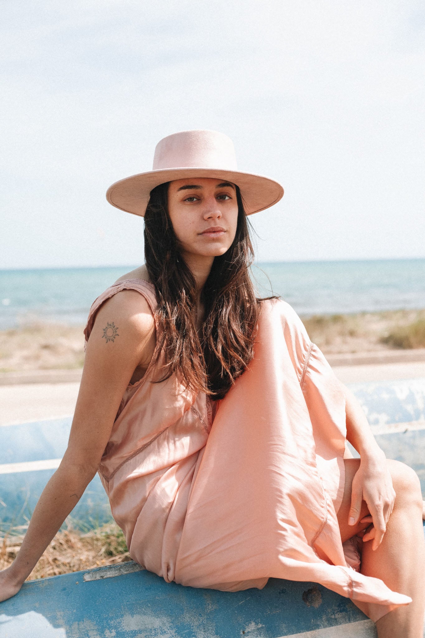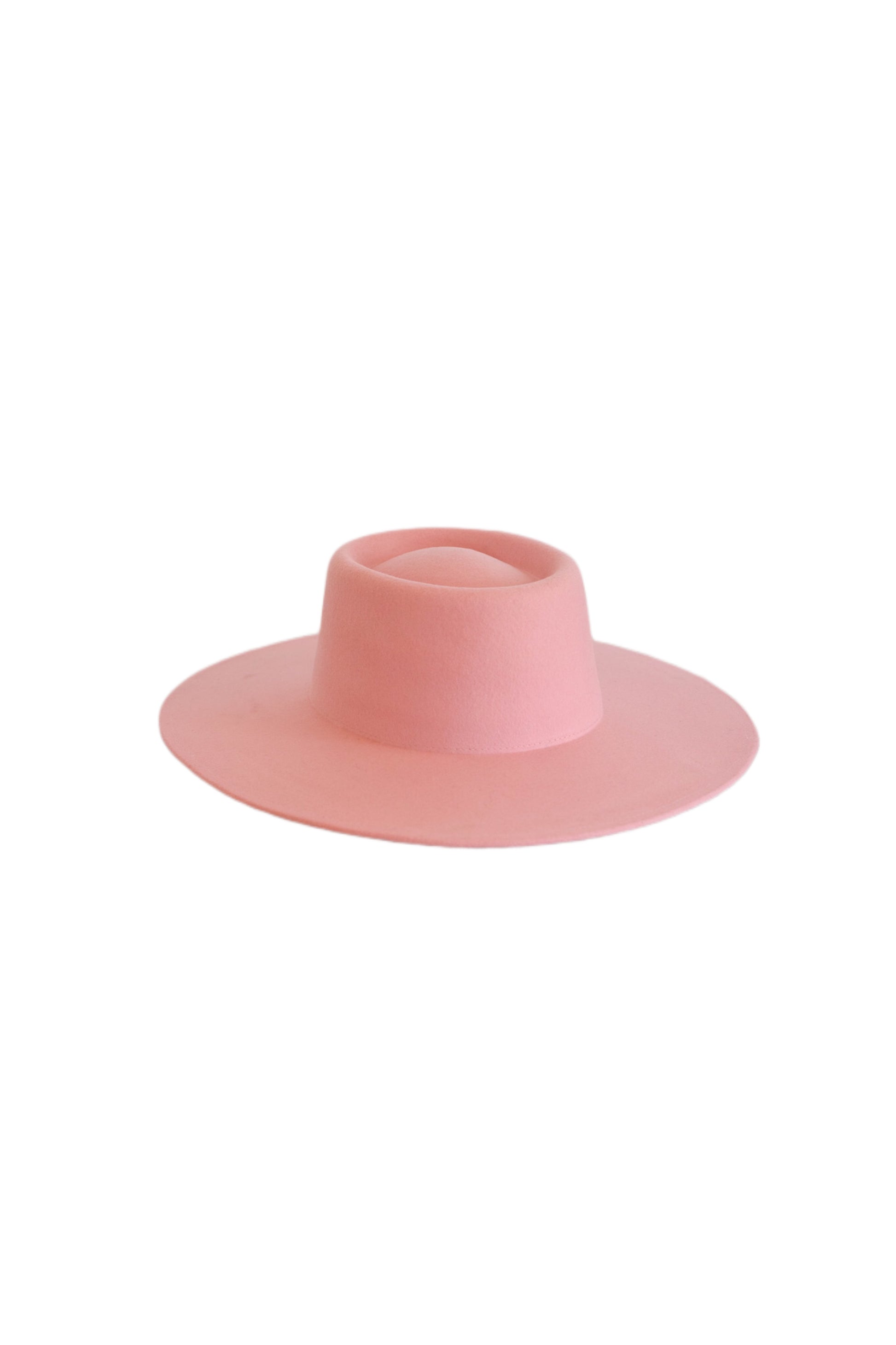 Our unisex, flat-crowned Bolero hat boasts a telescope crown and stiff wide 8cm brim in 100% sustainable wool. This blush pink beauty is an all-season hat for dancing on late summer nights or camping out on chilly Autumn weekends.