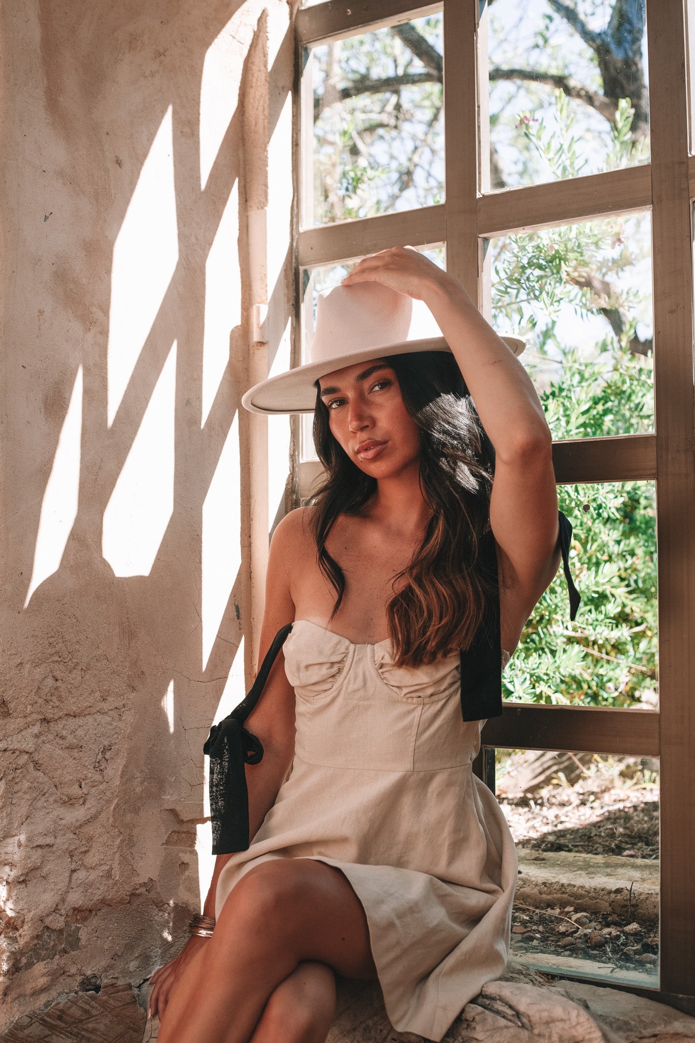 This cream 100% wool fedora hat features a teardrop crown and stiff brim, finished with a simple wool band.. This classic shape looks stylish on him or her, with jeans and a tee, a sundress in summer or to finish off your winter fit. Take it with you on any adventure.