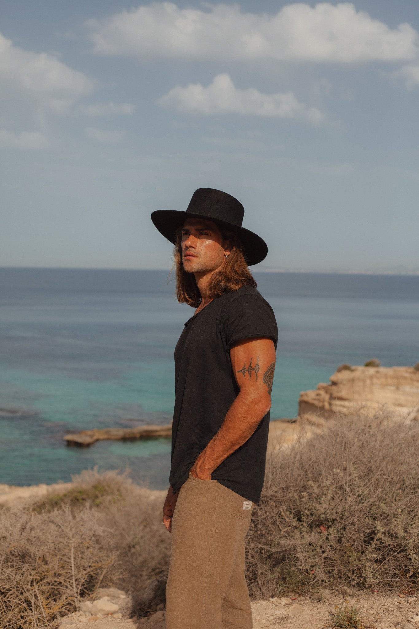 Our unisex, flat-crowned Bolero hat boasts a telescope crown and stiff wide 8cm brim in 100% sustainable wool. This classic black beauty is an all-season hat for dancing on late summer nights or camping out on chilly Autumn weekends.