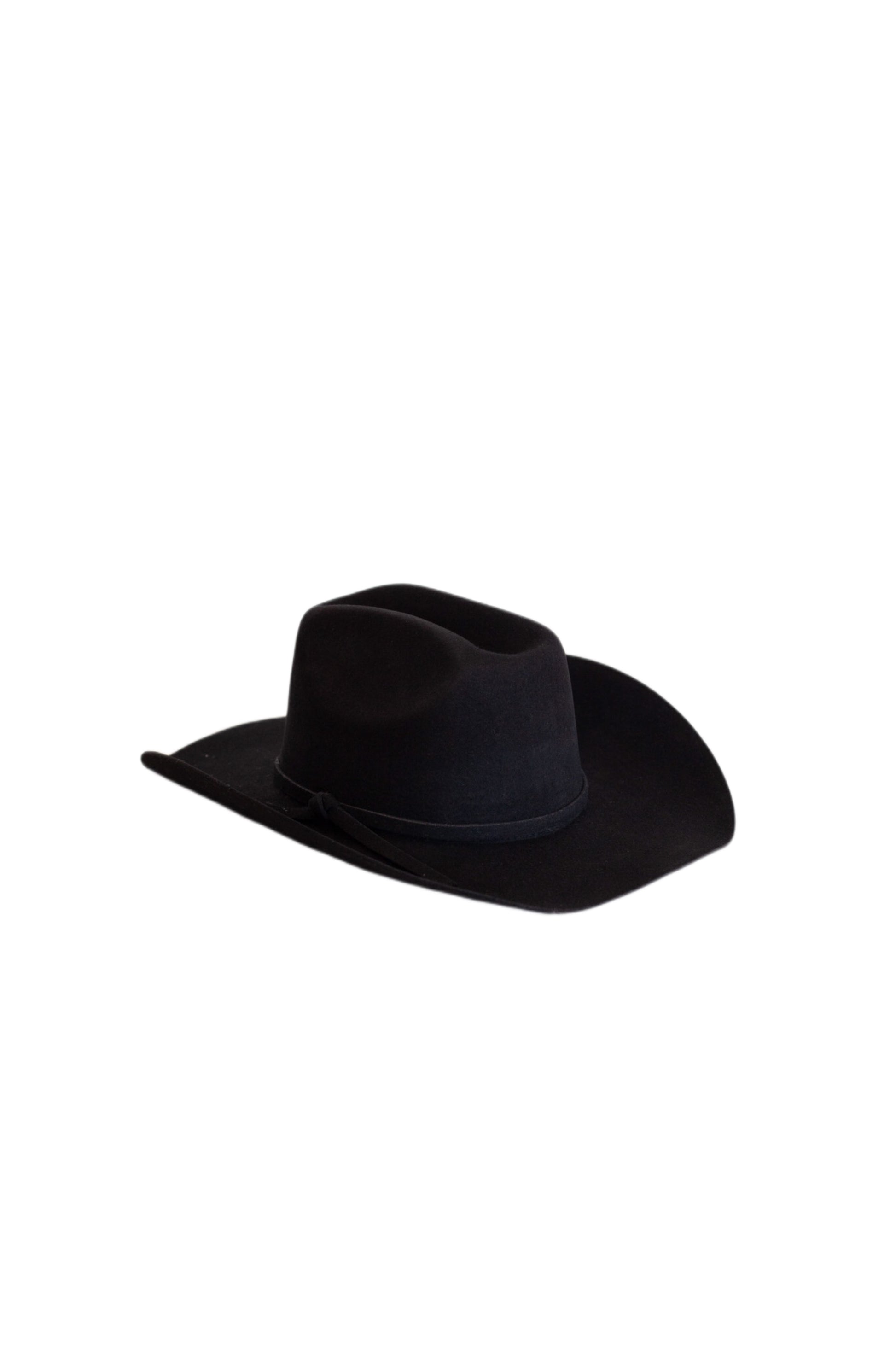 Our classic cowboy hat in black 100% wool. The stiff brim is 8cm wide and cuts an unmistakeable silhouette on the mountain skyline. It´s this season´s must-have for music festivals, lunch dates and lazy Sunday hang-outs... you don´t need to be a cattleman to rock our Vaquero!