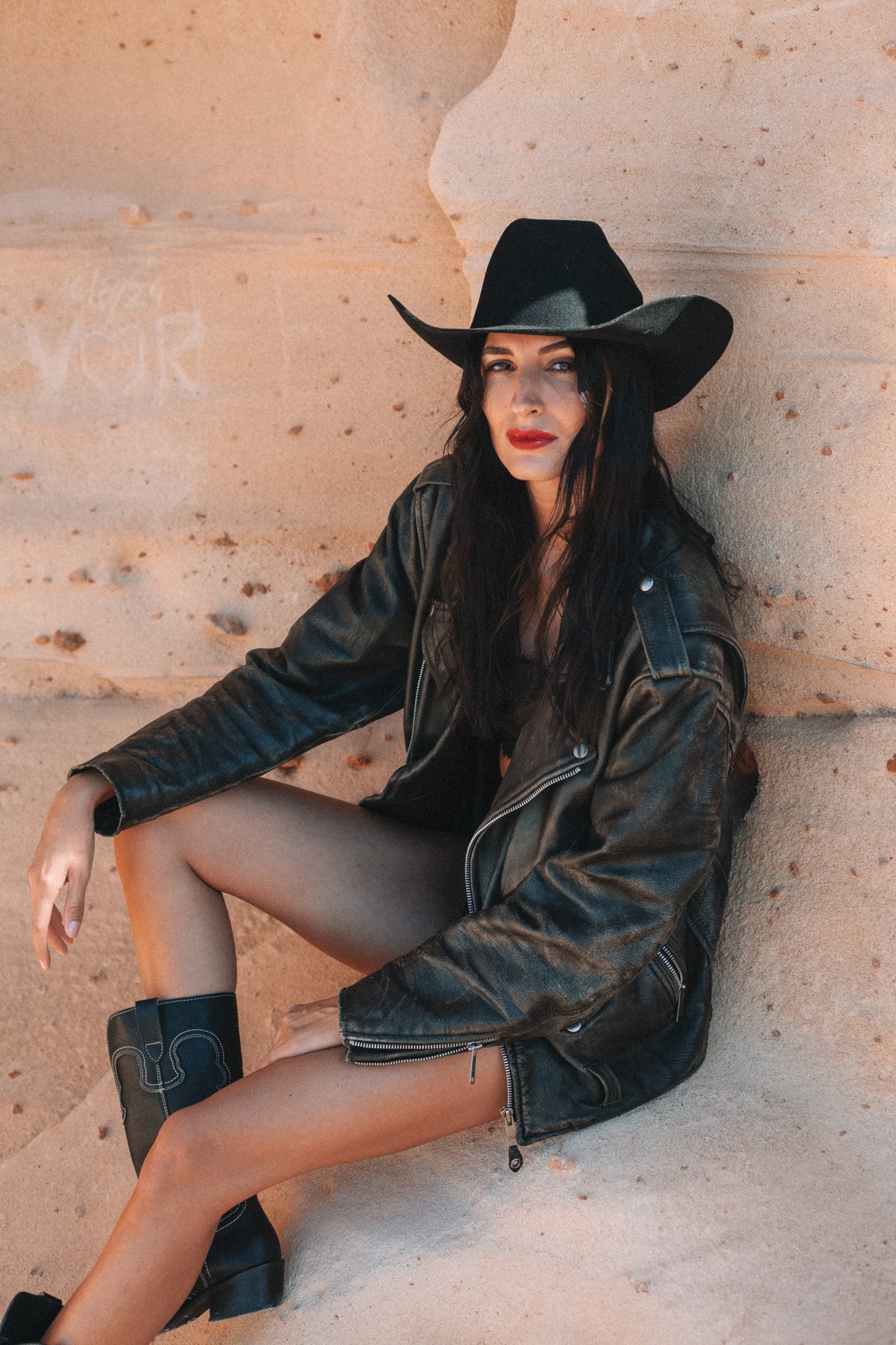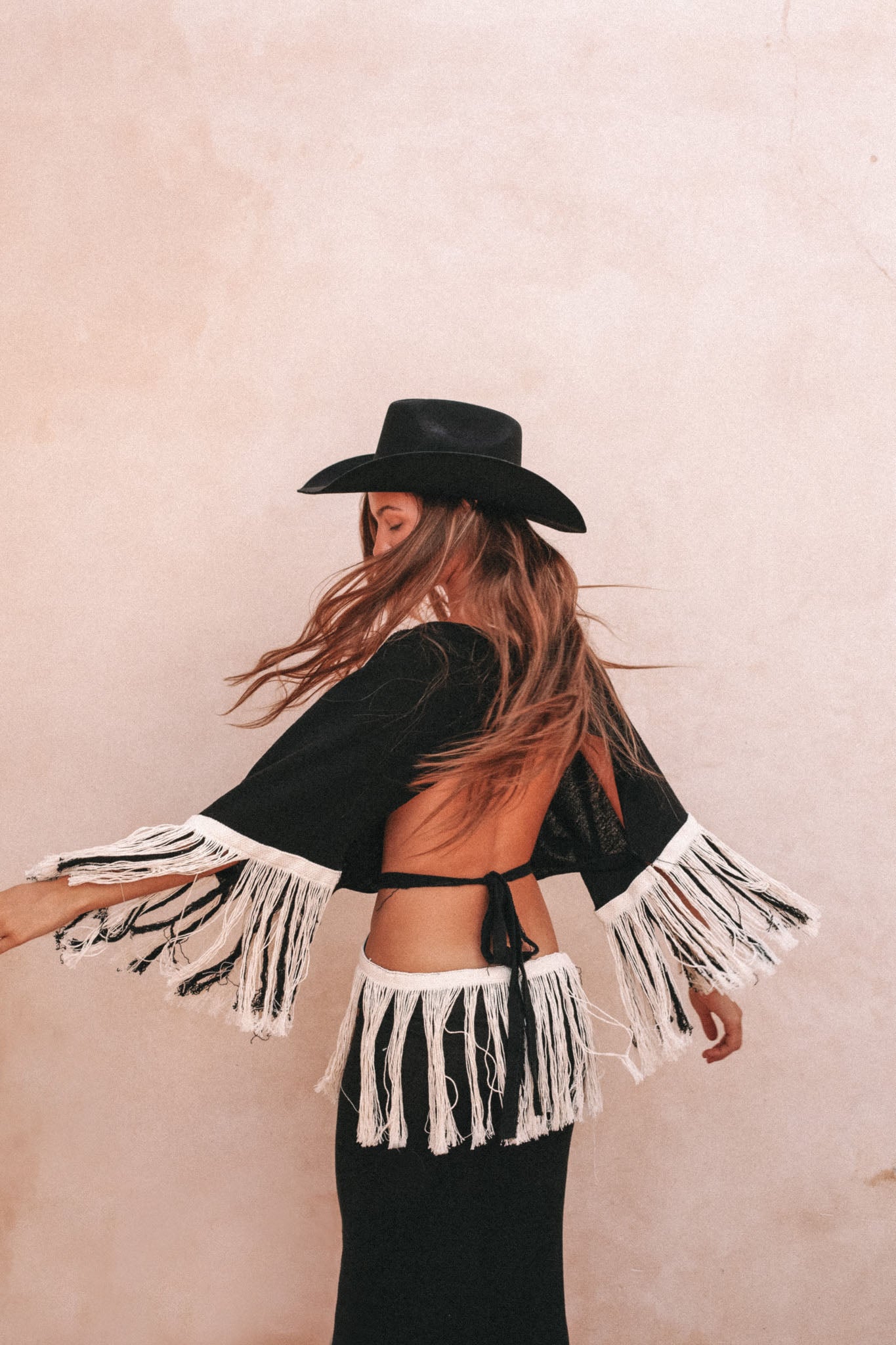 Our classic cowboy hat in black 100% wool. The stiff brim is 8cm wide and cuts an unmistakeable silhouette on the mountain skyline. It´s this season´s must-have for music festivals, lunch dates and lazy Sunday hang-outs... you don´t need to be a cattleman to rock our Vaquero!